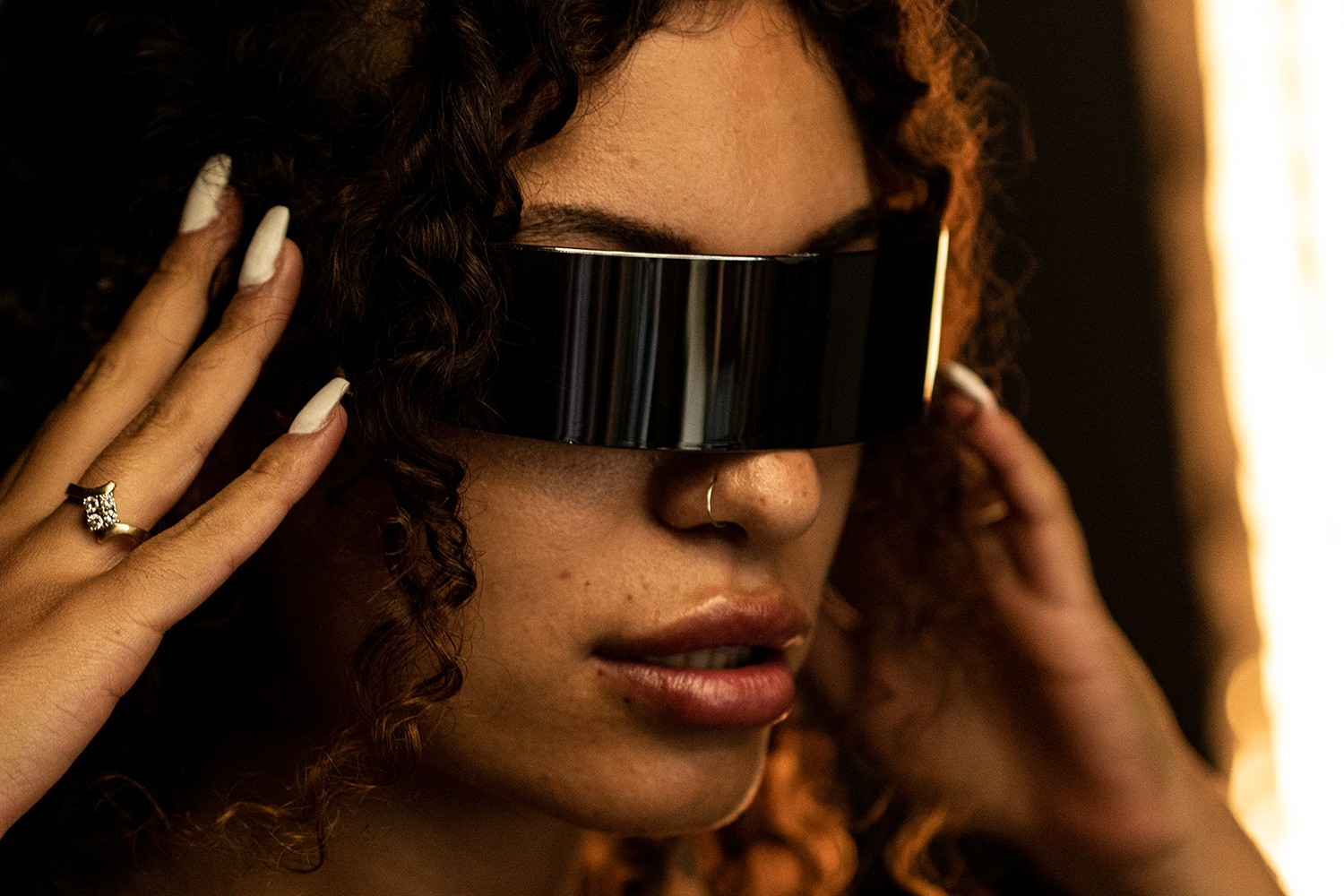 A bold plunge from quiet obscurity into the fierce radiance of the night, jagged geometric reflections gripping the soft pulse of a breathless silhouette.