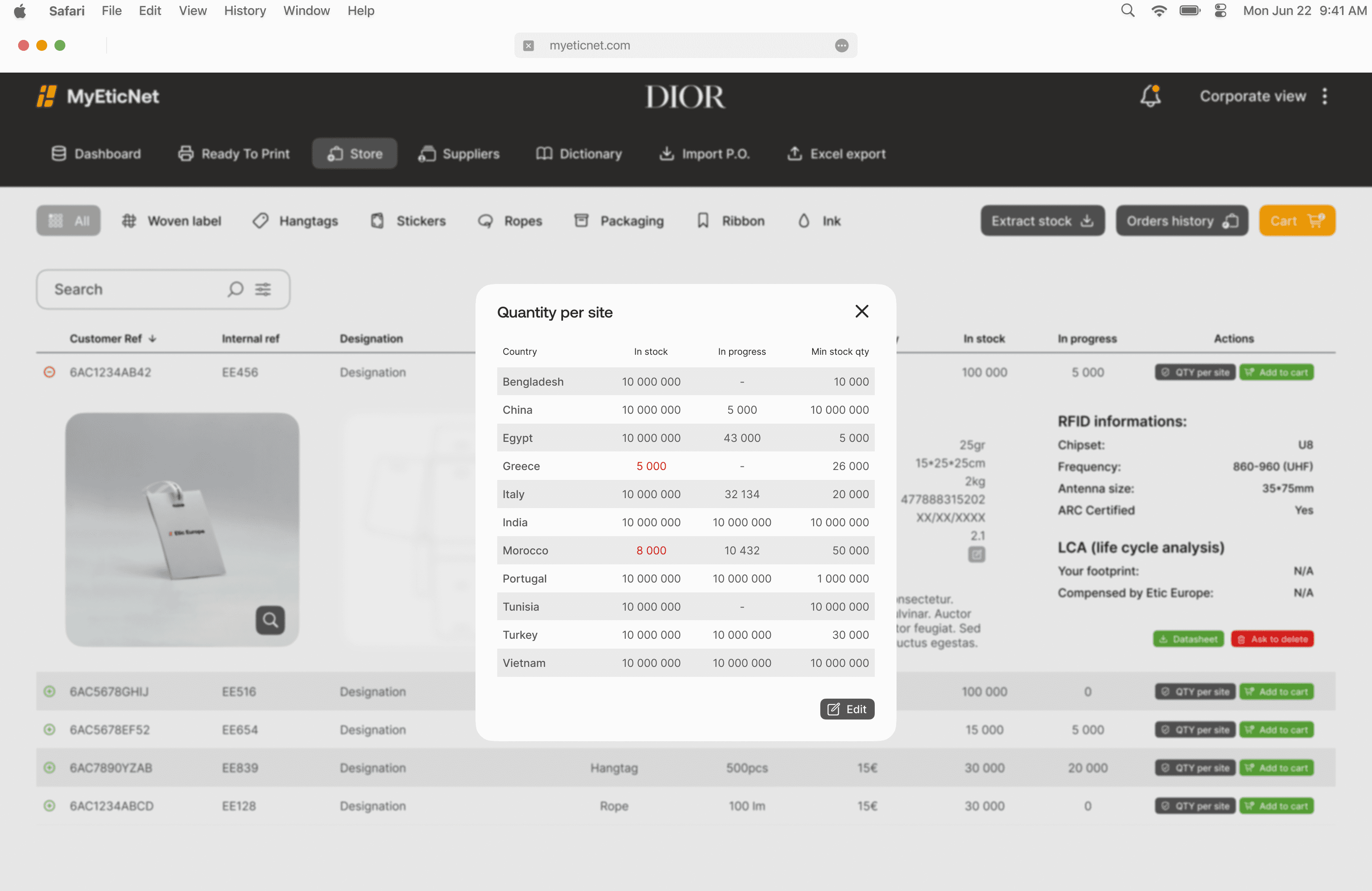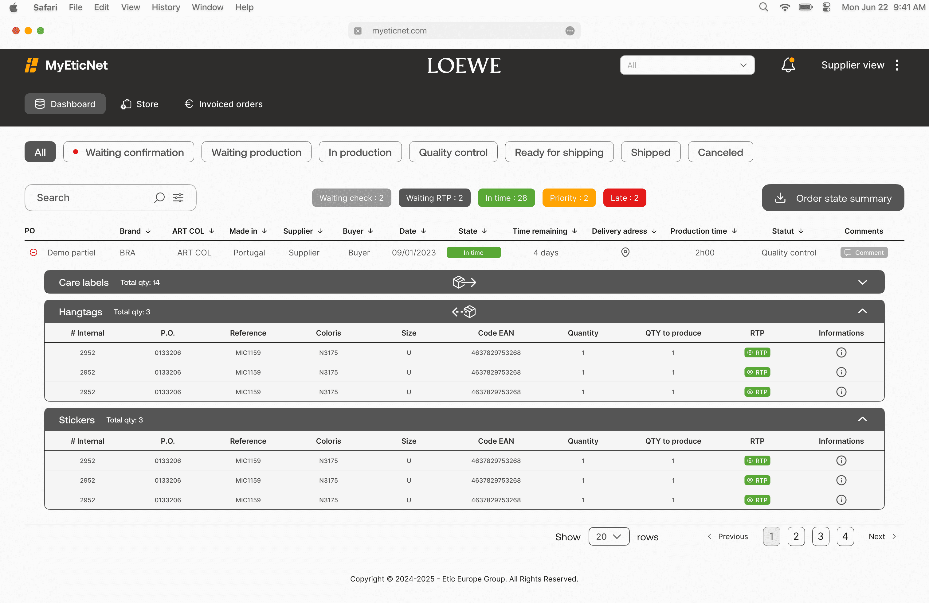 MyEticNet is a web app for order management, operating in a two- or three-party system. It enables Etic Europe’s clients to order items such as fabric labels and packaging, among other products.