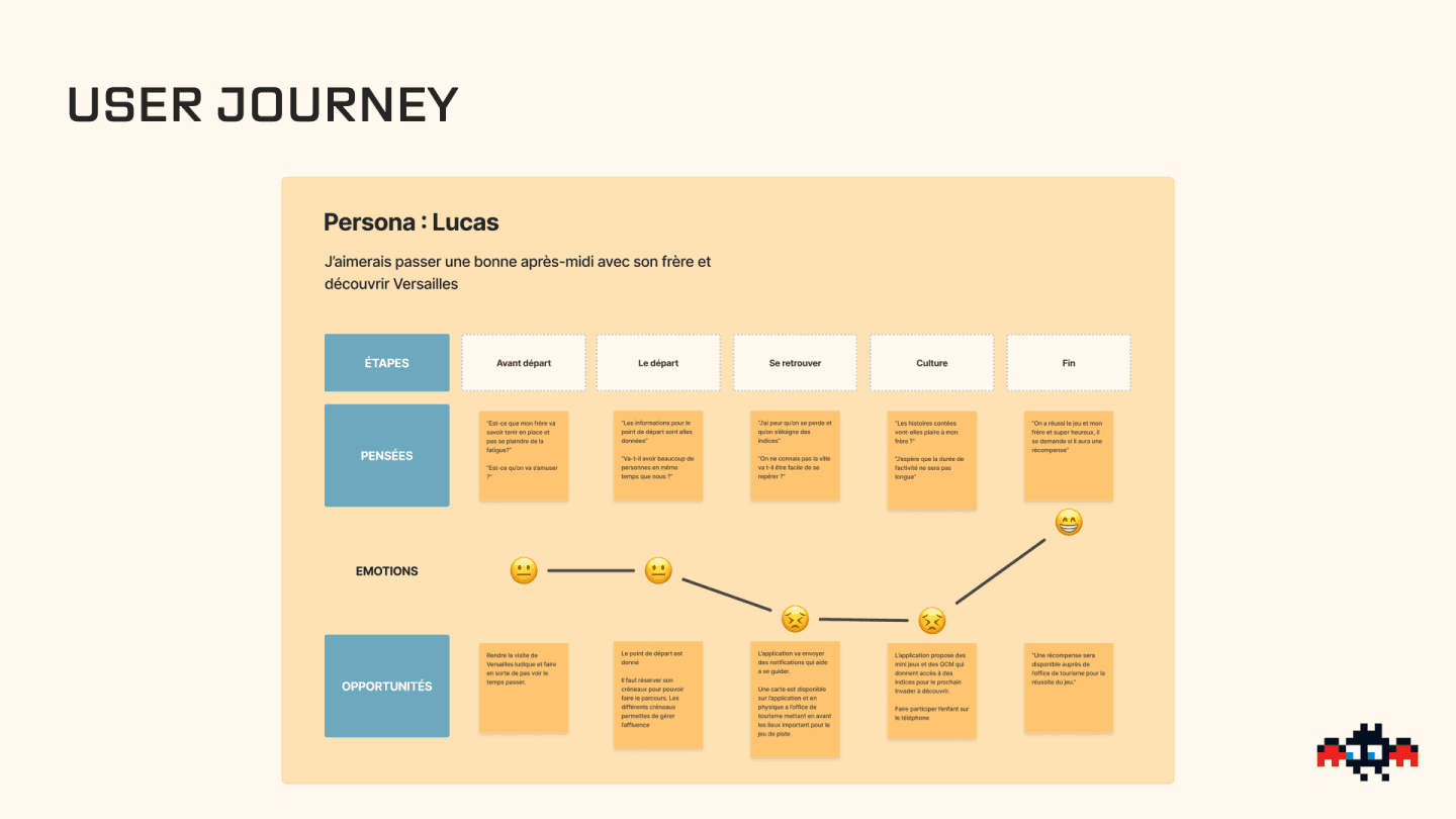 Versailles is a global icon of history, yet it faces a persistent hurdle: engaging a younger, digitally native audience outside the palace gates. The challenge was to design an innovative experience that revitalises local tourism by encouraging visitors to explore the city's hidden streets and local businesses rather than just the main historic site. By leveraging Augmented Reality (AR) and the urban art of "Invader," we aimed to transform a traditional cultural visit into a ludic, interactive adventure that provides a fresh perspective on the city's heritage