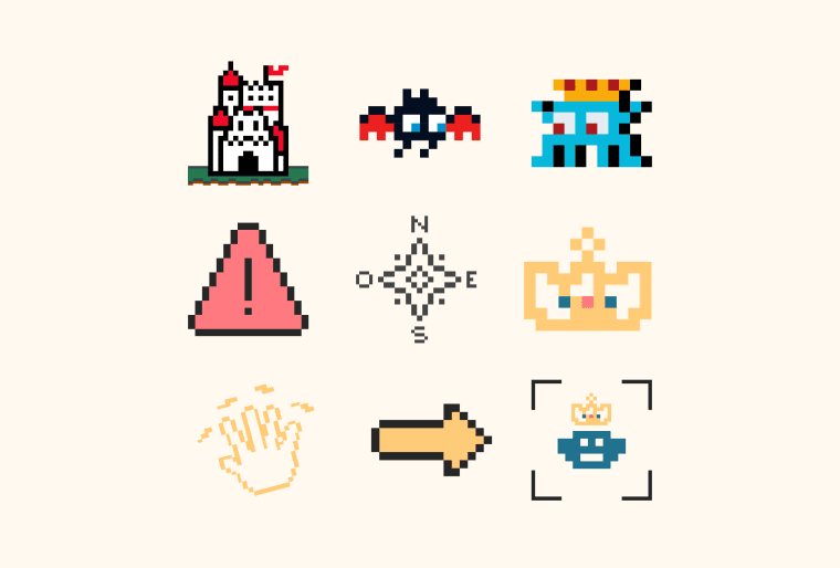 A pixelated crown was designed to visually represent the core "Crown Quest" narrative:
