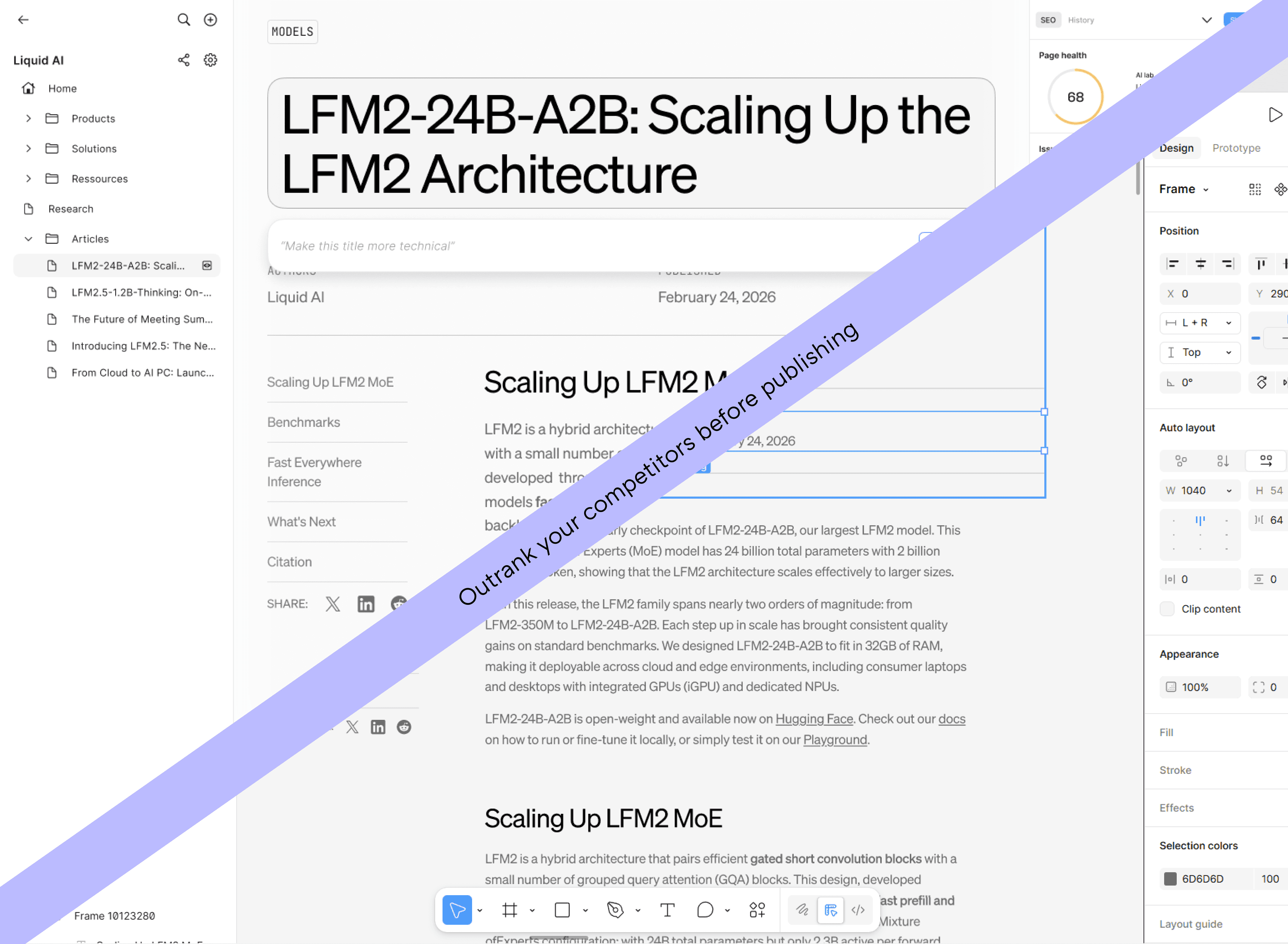 Sewow synchronises directly with your Figma files, creating a live bridge between design and content. When you edit text within our platform, those changes are pushed to your Figma frames in real-time. This eliminates the need for manual copy-pasting, allowing writers and designers to collaborate seamlessly while ensuring SEO hierarchy and structure are perfected before a single line of code is written.