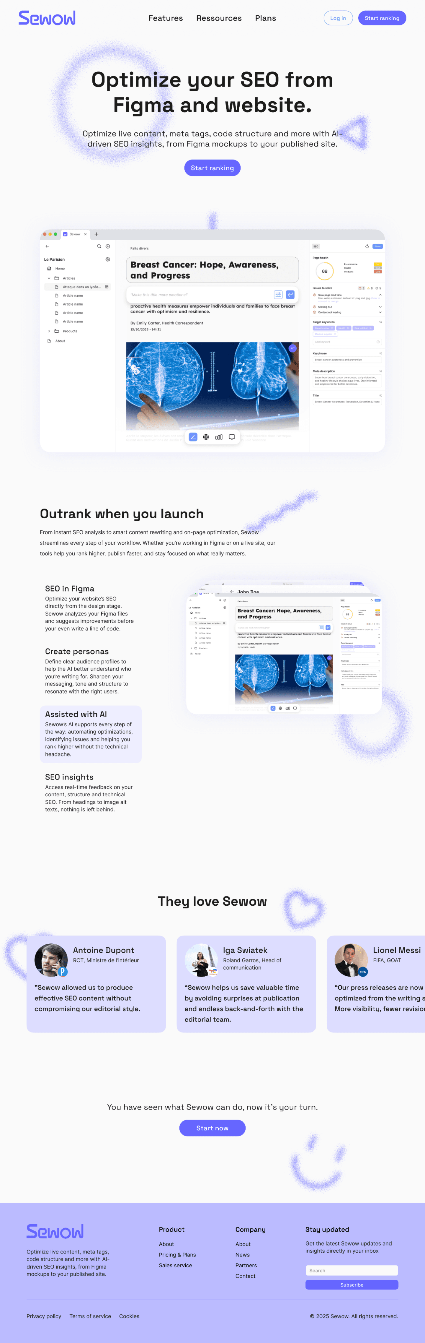 The marketing website needed to reflect Sewow’s core philosophy: making SEO accessible, native, and friendly. Instead of overwhelming potential users with complex data and technical jargon, the landing page is designed for clarity, approachability, and conversion.
